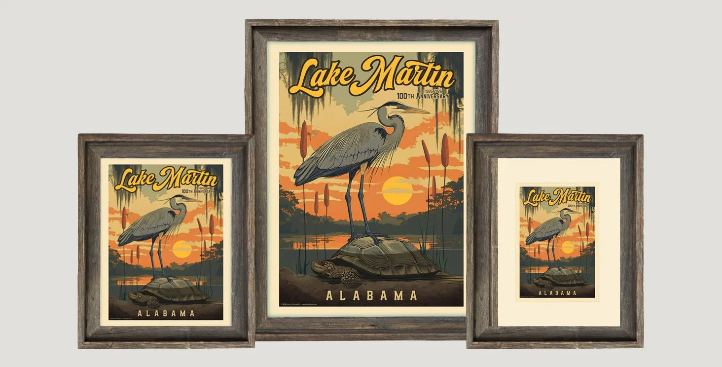 These thoughtfully created prints honor the 100th anniversary of Lake Martin and the abundant wildlife native to the lake. Framed in rustic barnwood, they will add a nice touch to your cabin, game room, or guest quarters in your lake home.