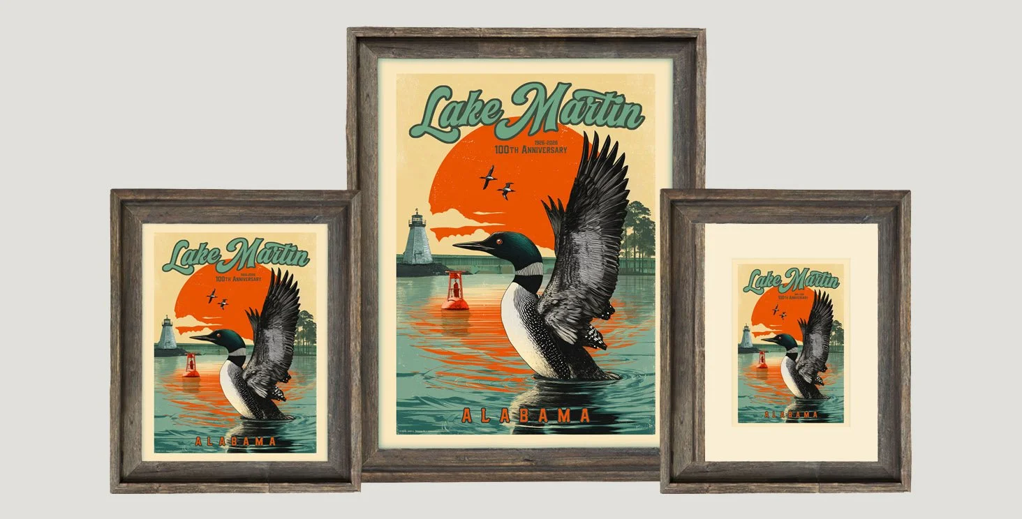 These thoughtfully created prints honor the 100th anniversary of Lake Martin and the abundant wildlife native to the lake. Framed in rustic barnwood, they will add a nice touch to your cabin, game room, or guest quarters in your lake home.