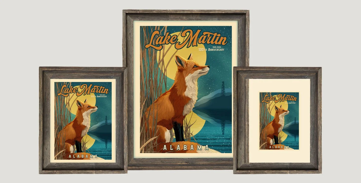 These thoughtfully created prints honor the 100th anniversary of Lake Martin and the abundant wildlife native to the lake. Framed in rustic barnwood, they will add a nice touch to your cabin, game room, or guest quarters in your lake home.