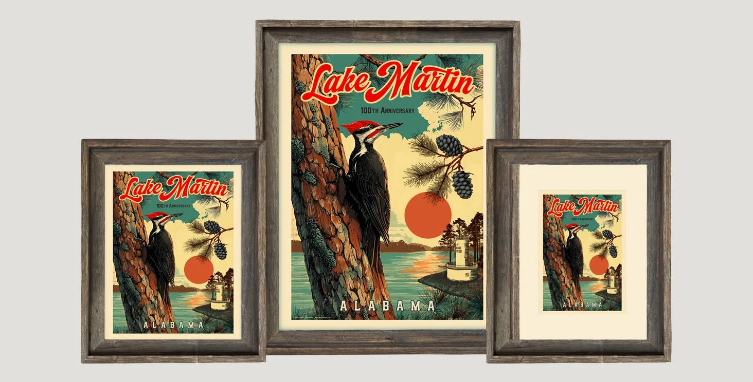 These thoughtfully created prints honor the 100th anniversary of Lake Martin and the abundant wildlife native to the lake. Framed in rustic barnwood, they will add a nice touch to your cabin, game room, or guest quarters in your lake home.